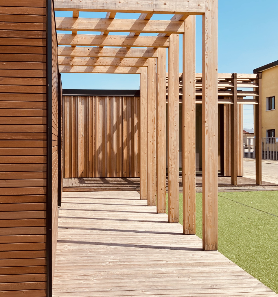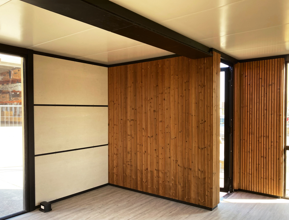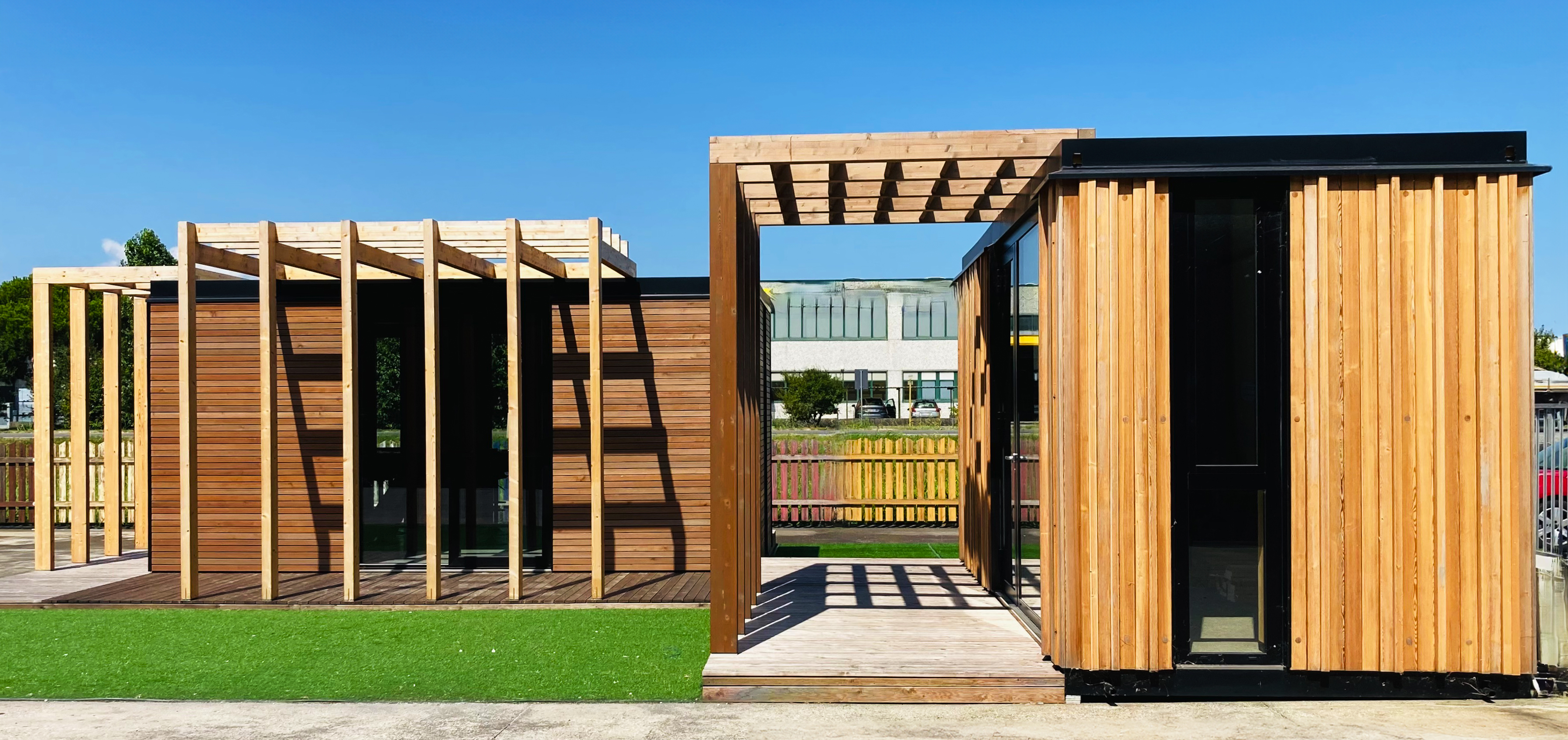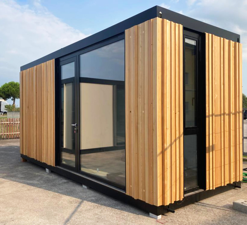 I moduli sono stati impreziositi con rivestimenti interni ed esterni proprio con il legno di commercializzazione Zennaro, nello specifico di larice siberiano, con verniciatura di protezione. Questa scelta ha portato il progetto, oltre ad avere una funzione operativa, ad essere per l’azienda cliente anche uno Show Room dimostrativo della sua capacità produttiva.